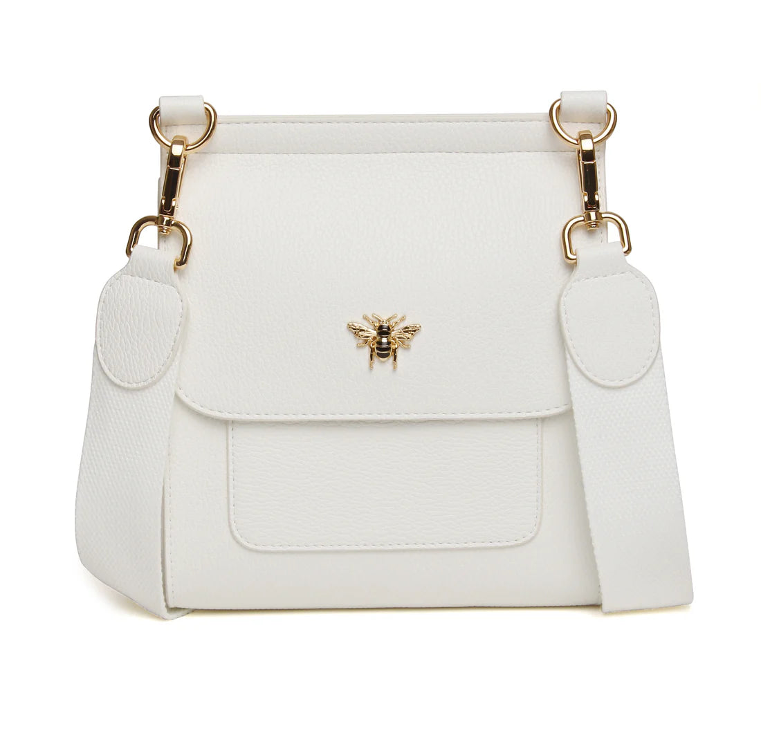 Effortlessly chic, the Bloomsbury Bag boasts a spacious compartment crafted from luxurious vegan leather. Fastened with a magnetic clasp, the front flap provides added security for your personal belongings. And with a detachable, fully adjustable strap featuring gold-toned clips, you can easily customize your look by switching out different straps.