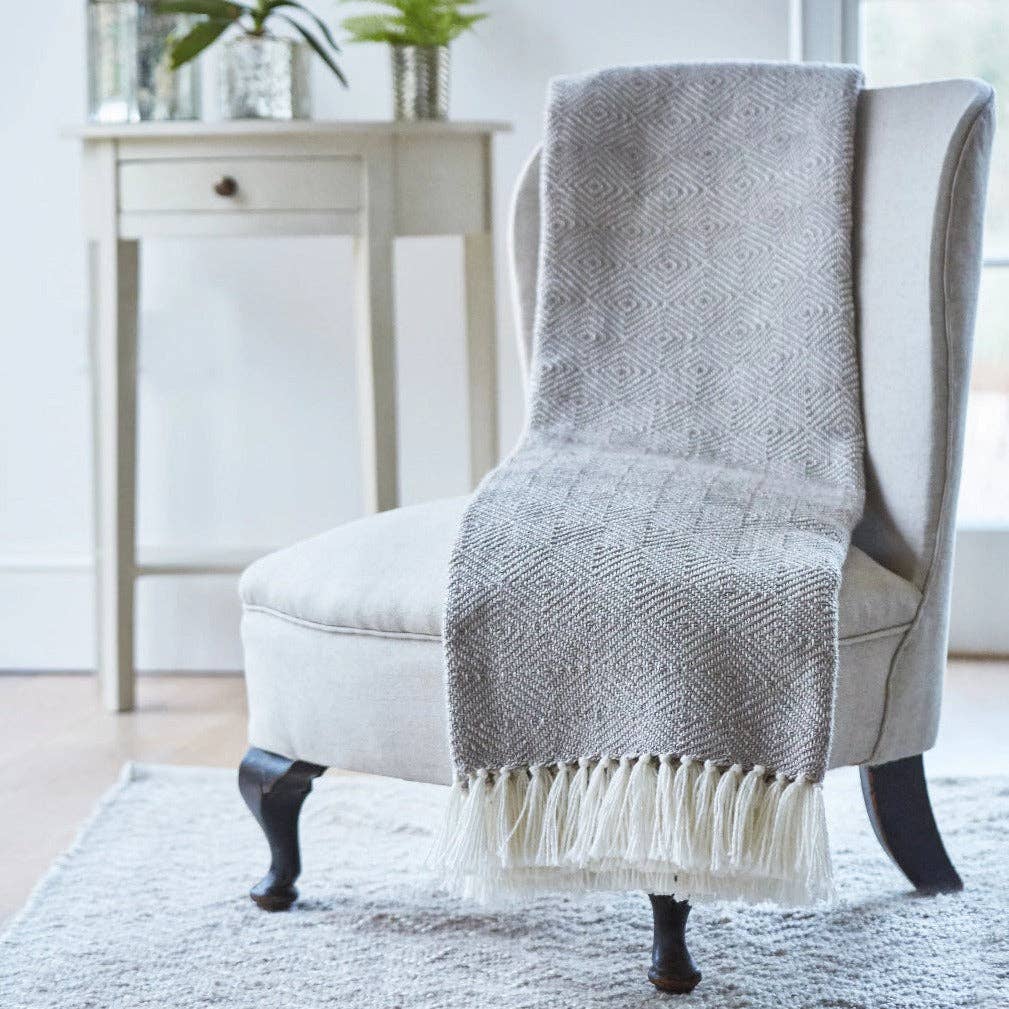 These new and improved oyster-colored blankets feature the same classic weave as our best-selling blanket range but with a new, lighter more refined weight and an extra 20cm in length. Made from approximately 300 recycled plastic bottles, these new larger blankets are soft and cozy like wool, machine washable, stain resistant, and can be used all around the home and outdoors too.